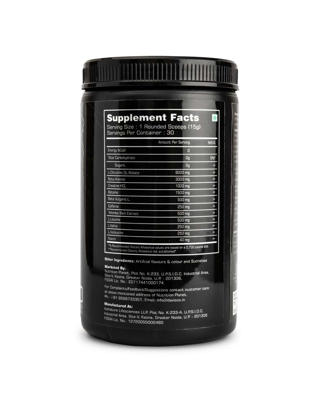 Powerful Ingredient Blend: Contains Citrulline Malate, Beta-Alanine, Betaine, Creatine HCL, Yohimbine Bark Extract, Niacin, and Caffeine – all in effective doses.